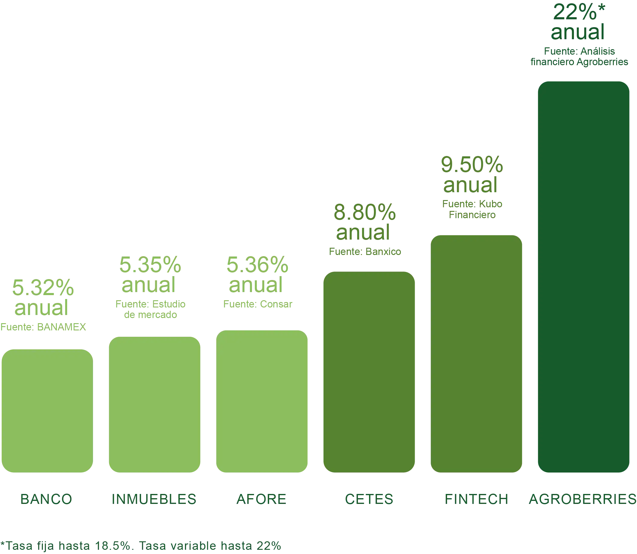 *Las proyecciones de ingreso y rendimientos son estimadas de acuerdo con la experiencia de Agroberries y el comportamiento del mercado, basados en datos promedio de producción y conservadores en precio de fruta.
